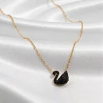 Graceful black swan pendant necklace with crystal detailing. A symbol of elegance & transformation.